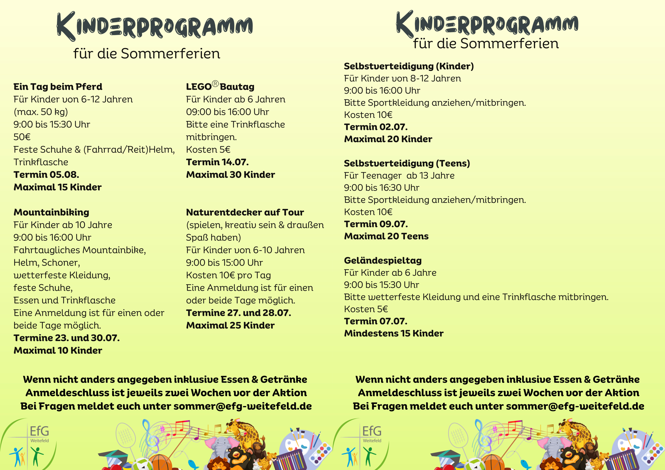 Wir bieten dir ein spannendes und kunterbuntes Programm für die Sommerferien. Alle Kinder und Jugendliche von 6 bis 18 Jahren sind herzlich zu unseren Tages- und Halbtagesaktionen eingeladen. Wir haben verschiedene Aktionen geplant, schau doch einfach mal, ob was für dich dabei ist.